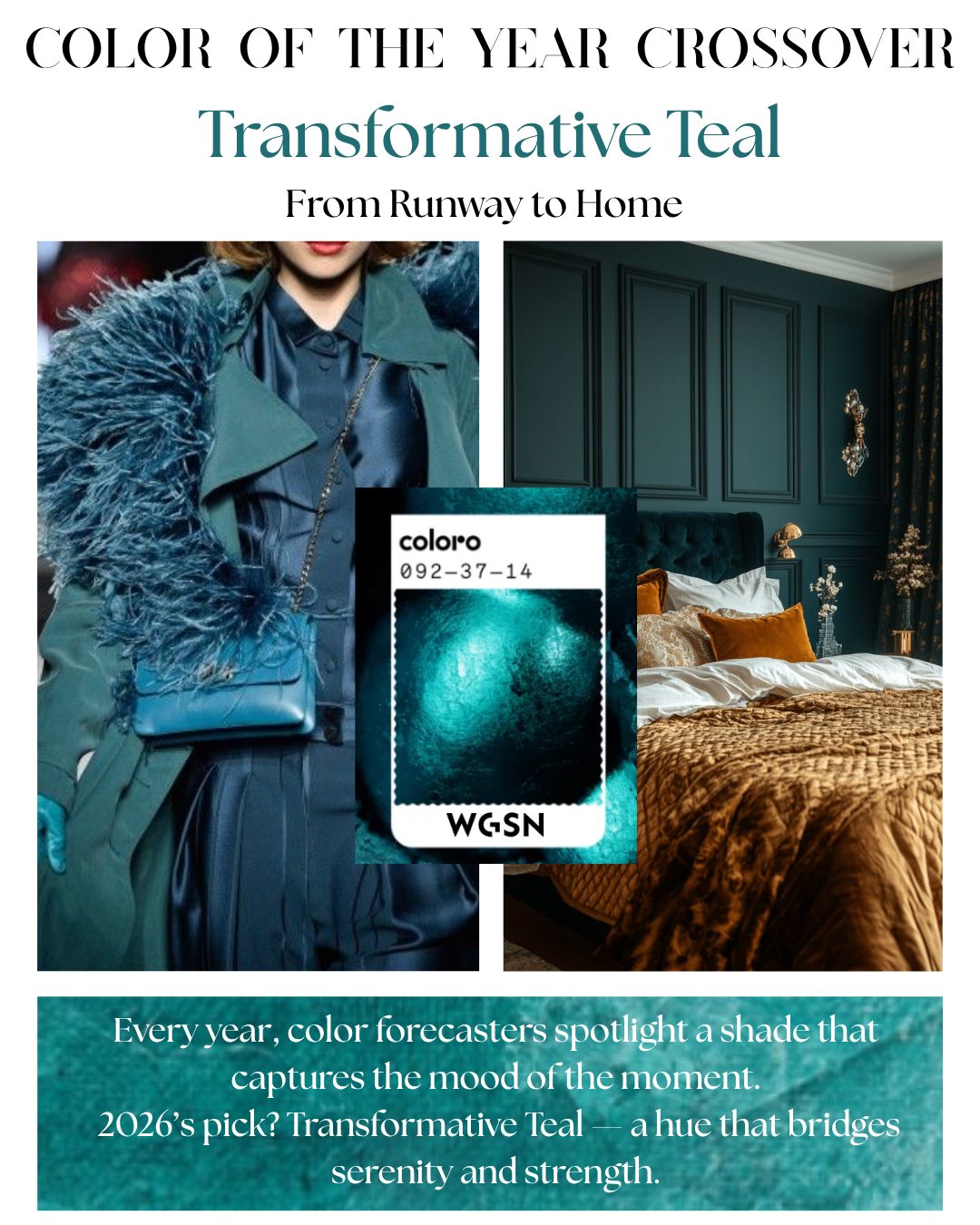 Every year, color experts predict the hues that will shape our wardrobes — and eventually, our homes. For 2026, trend forecasters are calling it: Transformative Teal.